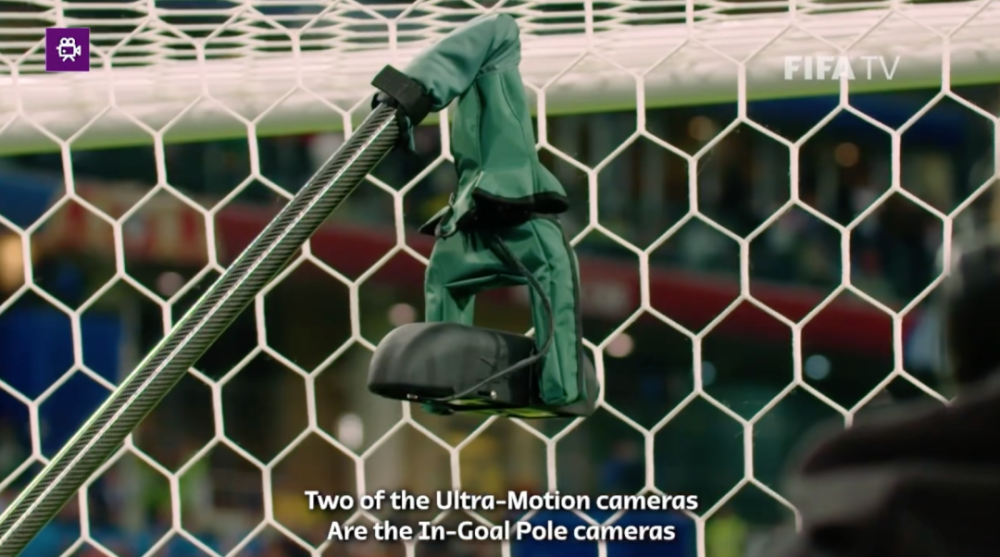 在本次卡塔尔世界杯赛事中,主要布置了两个摇臂机位。一是在球门后的体积轻便的鱼竿摇臂机位,主要是用来拍摄进球的精彩画面和守门员扑救等镜头。